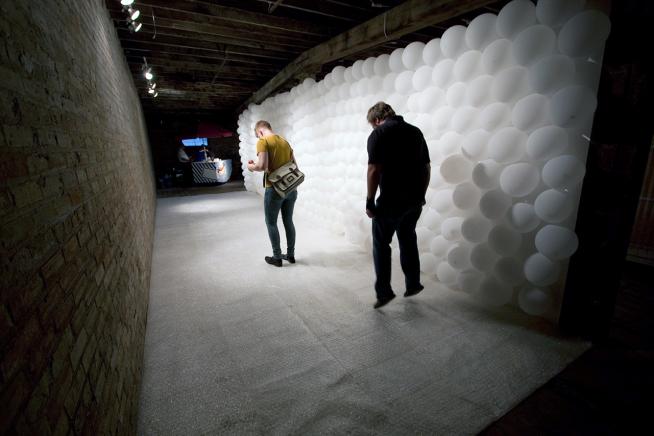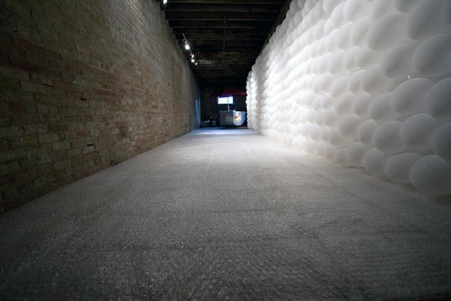 The ordinary becomes extraordinary as bubble wrap and balloons take on a new dimension in the re-installation of a fragment of Andy Ducett’s acclaimed 2012 Soap Factory exhibition why we do this. Embodied memories, collective experiences, primal sensations and sounds collide as you make your way down this corridor of simple pleasures and plain fun.
