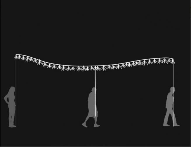 Pomp is a celebration of us in this place, a display of our expressions and stories, turning individual contributions into collected sculptures, which will parade through the night. Rendering courtesy the artist.