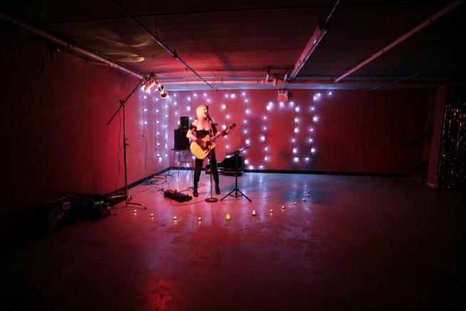 Live interactive performance by Venus DeMars. Photo by Sharyn Morrow.