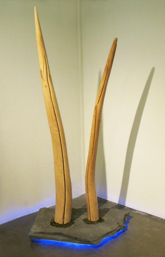 Scott Szarkowicz BFA 2013, "Don't Say That You Love Me" 2013, wood, stone, moss, LEDs. Photo courtesy the artist.