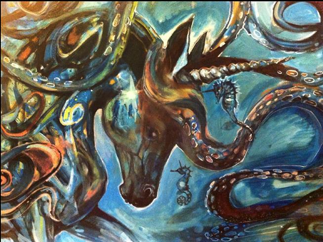 Original unicorn painting by Sara Syverhus. Image courtesy the artist.