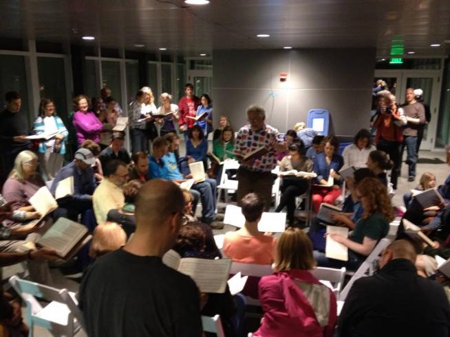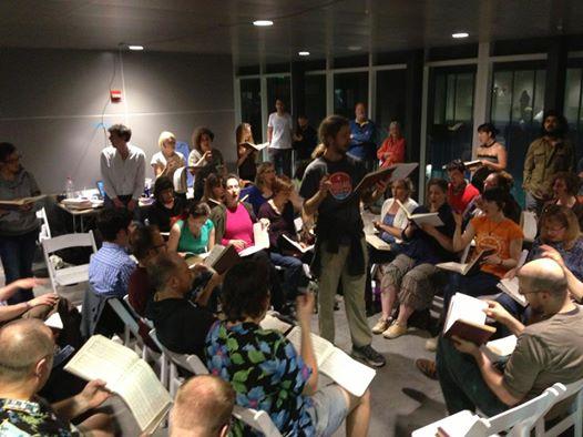 Sacred Harp “singings” are not performances. There are no rehearsals and no separate seats for an audience. Every singing is a unique and self-sufficient event with a different group of assembled participants. The singers sit in a hollow square formation with one voice part on each side, all facing inwards so we can see and hear each other. However, visitors are always welcome to sit anywhere in the room and participate as listeners.